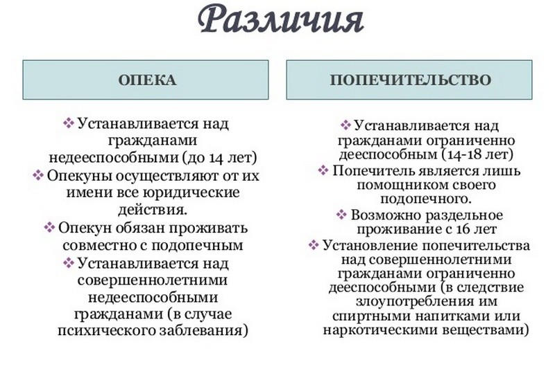 Разница между попечительством и опекой
